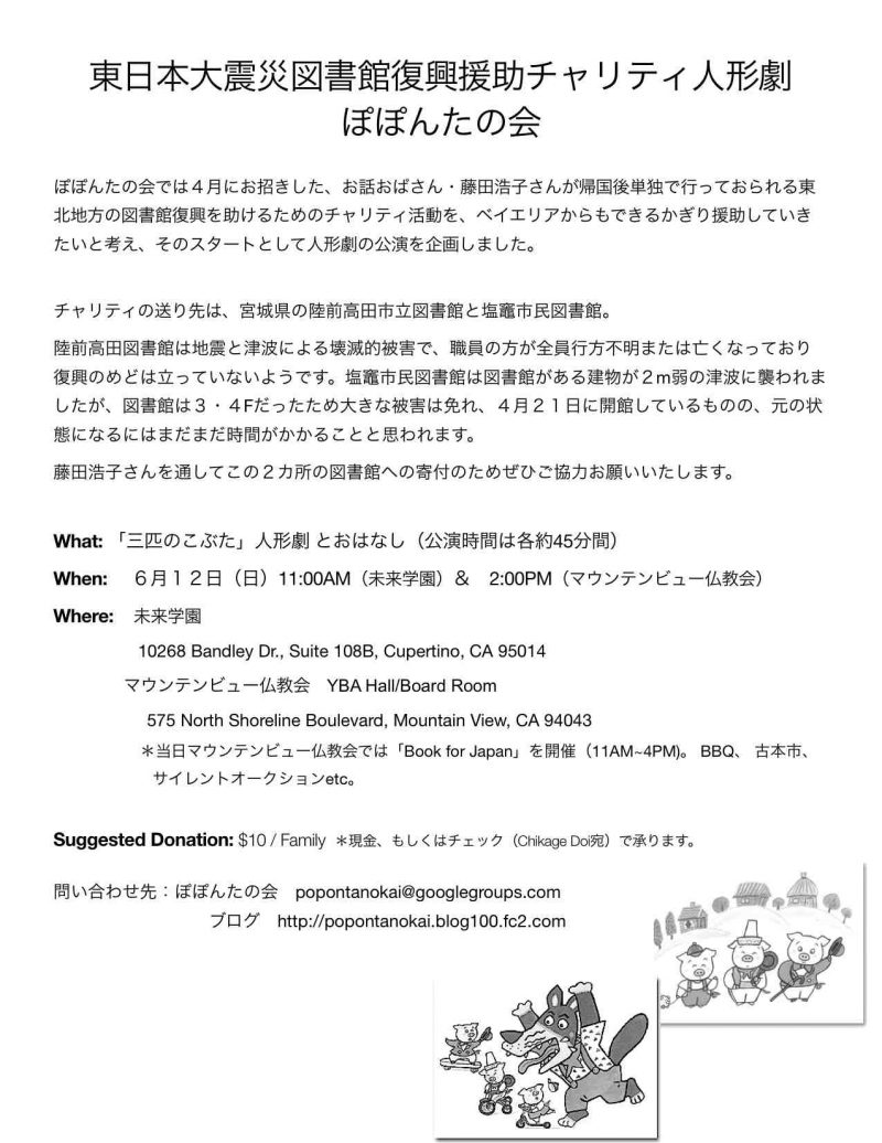 6月12日の人形劇「三匹のこぶた」のフライヤーです。
