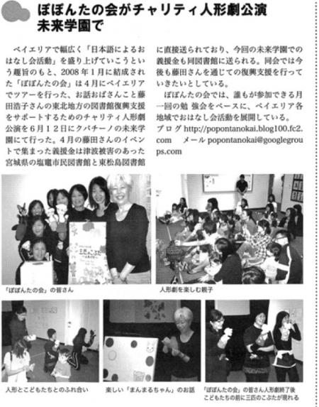 未来学園とマウンテンビューでのチャリティ人形劇公演について写真入りの記事が、地元日系紙「ベイスポ」と「スポーツJ」に紹介されました!
