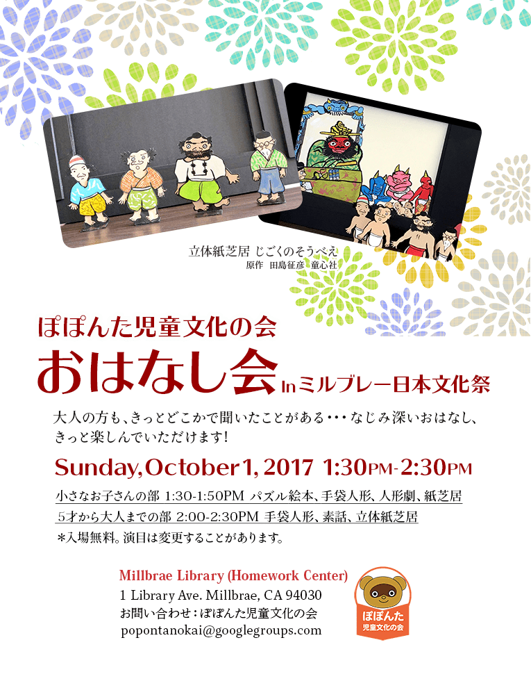 ぽぽんた児童文化の会は、10月1日のミルブレー日本文化祭に、今年も参加します!