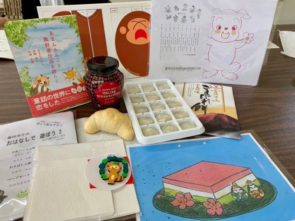 今年初めてのミーティングでは、日本在住のぽぽんた メンバーから嬉しいプレゼントが届きました。藤田浩子さんのお話の小道具や、ぽぽんたくんにそっくりなバッジ、めずらしい点字おりがみなど。みんなで眺めたりなでたりしてほくほくでした。ありがとうございました。大事に使わせていただきます。